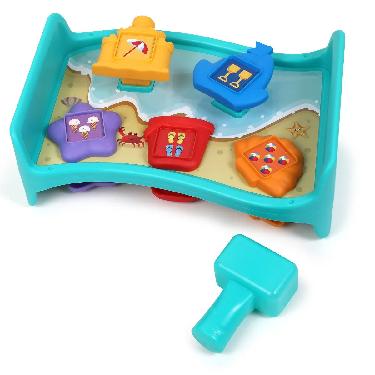 Turn a trip to the seaside into a number-filled fine motor adventure! Kids build hand strength, coordination, and more fine motor skills when they grab their kid-safe hammer and pound the beach-themed pegs into this double-sided pounding bench. As they play, kids can also use the numbered pegs to strengthen number identification and early counting skills. Plus, pegs stay connected for no-mess fun! Made using sustainable post-consumer recycled plastic, this toy also gives kids a greener way to play!