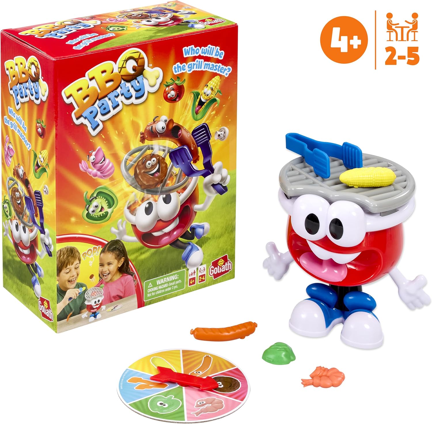 It’s time to turn up the heat in BBQ Party! Players take turns using the tongs to place and turn over food on the grill. Collect the most grilled treats before someone sets off this spring-loaded BBQ because this grill can really FLY! With no reading or batteries required, it’s the perfect kid-powered game for any age. Recommended for 2-4 players, ages 4 and up.